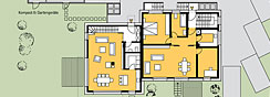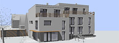 Dieser Neubau eint den Wunsch nach einem Eigenheim im Passivhausstandard in Verbindung mit einer modernen Architektursprache. Auf eine anspruchsvolle räumliche Gestaltung und klare, schnörkellose Architektur wurde seitens der Bauherren großen Wert gelegt. Das angegliederte Gebäude stellt Mietwohnungen zur Verfügung, welche ebenso wie das Privathaus in Passivhausbauweise realisiert werden sollen. Eine Entwurfsoptimierung fand von Anfang an im Hinblick auf den zukünftigen Energiebedarf des Gebäudes statt, die Ästhetik wurde dabei aber nicht außer Acht gelassen. Eine großzügige Innenraumgestaltung mit offenem Charakter war ebenso ein Entwurfsziel wie die Zusammenführung des Innenraumes mit dem erholsamen Gartenbereich. Zudem wurden die Wünsche einbezogen, das Gebäude auch später altersgerecht in abgewandelter Form flexibel nutzen zu können. Die energetische Gebäudesimulation mittels PHPP-Berechnung erfolgte entwurfsbegleitend.