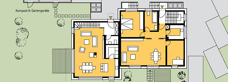 Dieser Neubau eint den Wunsch nach einem Eigenheim im Passivhausstandard in Verbindung mit einer modernen Architektursprache. Auf eine anspruchsvolle räumliche Gestaltung und klare, schnörkellose Architektur wurde seitens der Bauherren großen Wert gelegt. Das angegliederte Gebäude stellt Mietwohnungen zur Verfügung, welche ebenso wie das Privathaus in Passivhausbauweise realisiert werden sollen. Eine Entwurfsoptimierung fand von Anfang an im Hinblick auf den zukünftigen Energiebedarf des Gebäudes statt, die Ästhetik wurde dabei aber nicht außer Acht gelassen. Eine großzügige Innenraumgestaltung mit offenem Charakter war ebenso ein Entwurfsziel wie die Zusammenführung des Innenraumes mit dem erholsamen Gartenbereich. Zudem wurden die Wünsche einbezogen, das Gebäude auch später altersgerecht in abgewandelter Form flexibel nutzen zu können. Die energetische Gebäudesimulation mittels PHPP-Berechnung erfolgte entwurfsbegleitend.