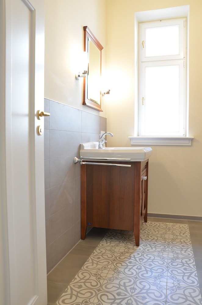 Das bestehende Wohnhaus befand sich in baufälligem Zustand; im Laufe der Jahrzehnte war ihm zudem so manche Verunstaltung im Namen der 'Modernisierung' zugefügt worden. Die erste Aufgabe bestand darin, die vergangene Schönheit wiederherzustellen.